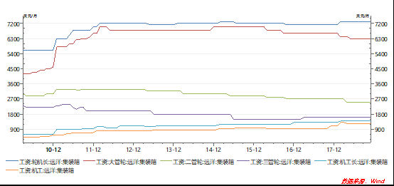 即远洋集装箱船船员进入2018年以来的薪资,基本是两头微涨(一高一低),中间区段下降(下图)。