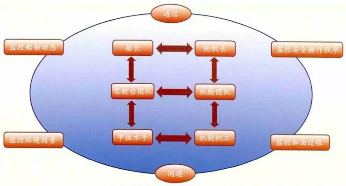 (1)甲板部门与轮机部门之间的相互沟通无效,甲板部门与机舱部门的团队协作不到位。