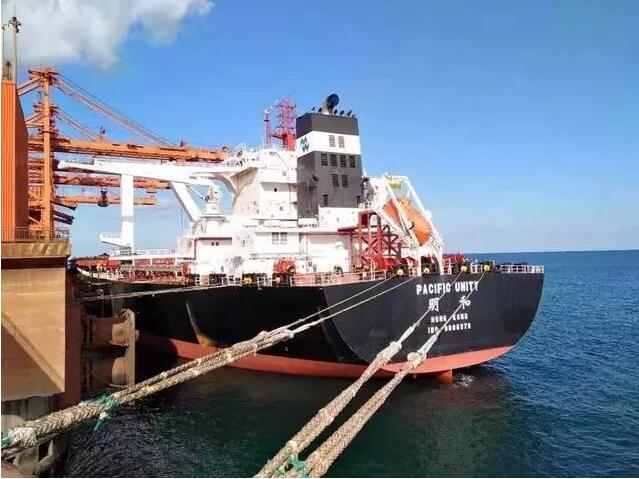 40万吨级超大型矿砂船靠泊大连北良港码头。