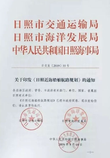 9月19日,日照市交通运输局、日照市海洋发展局、日照海事局在全省沿海地市率先印发了《日照近海船舶航路规划》。