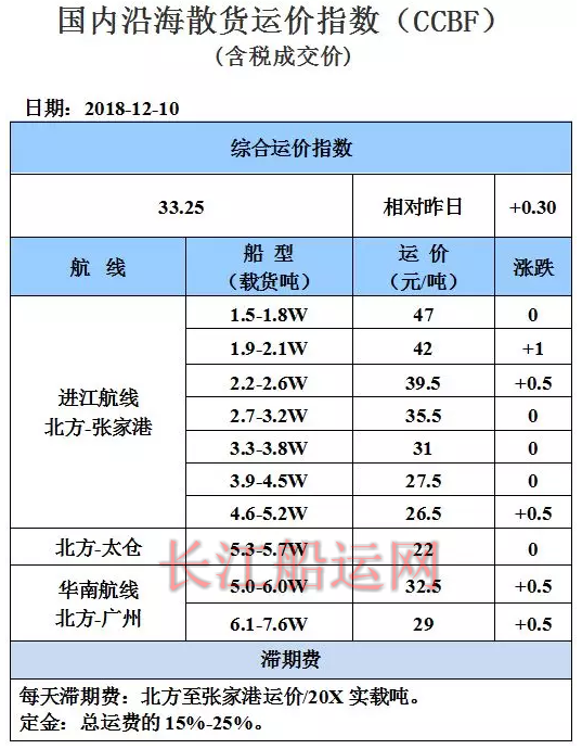 12月10日国内沿海运价参考