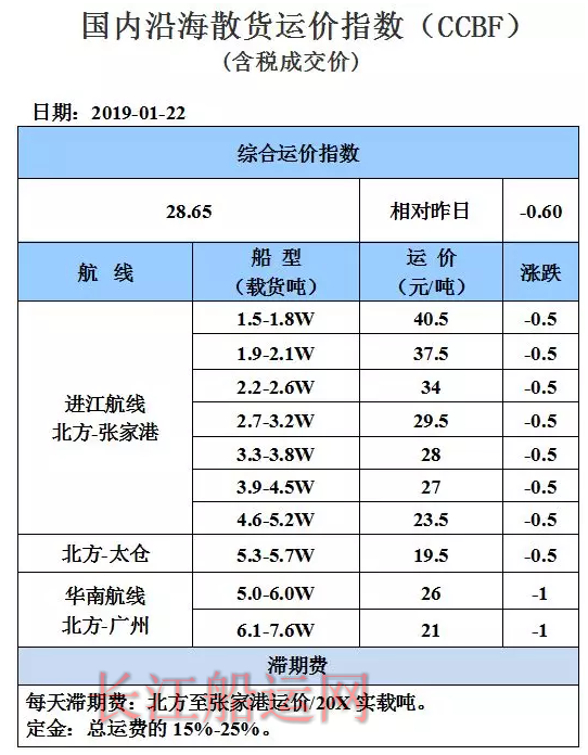 1月22日国内沿海运价参考