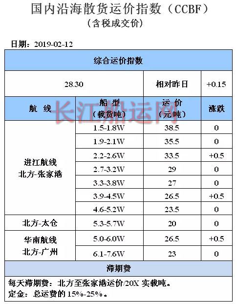 2月12日国内沿海运价参考