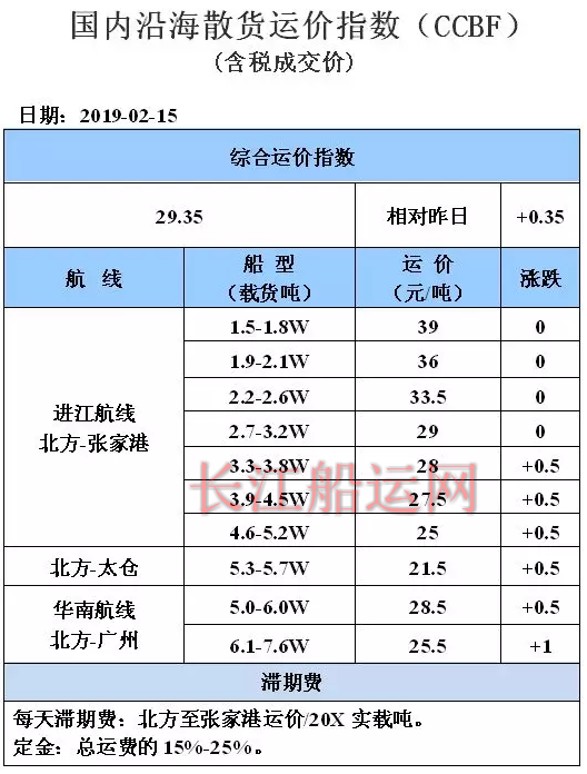 2月15日国内沿海运价参考