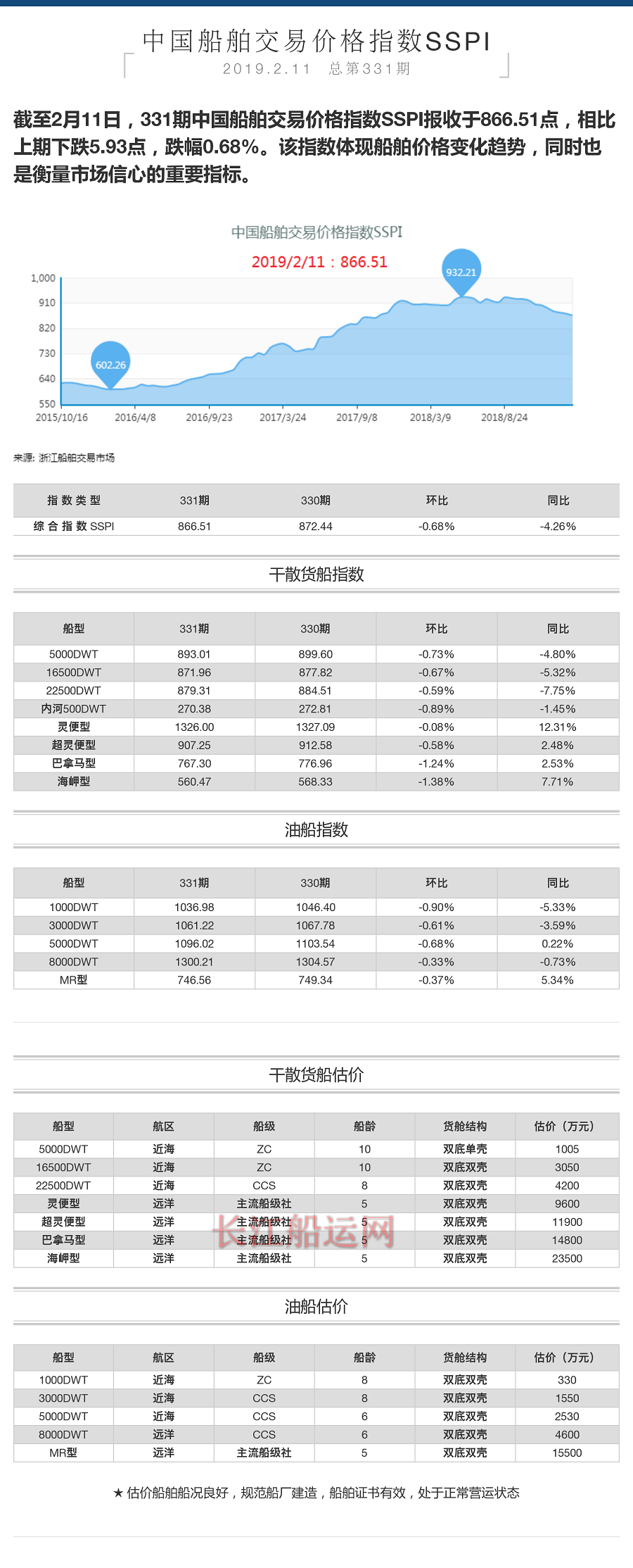 331期中国船舶交易价格指数SSPI【2019.1.19-2019.2.11】