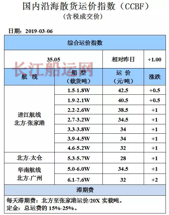 3月7日国内沿海运价参考