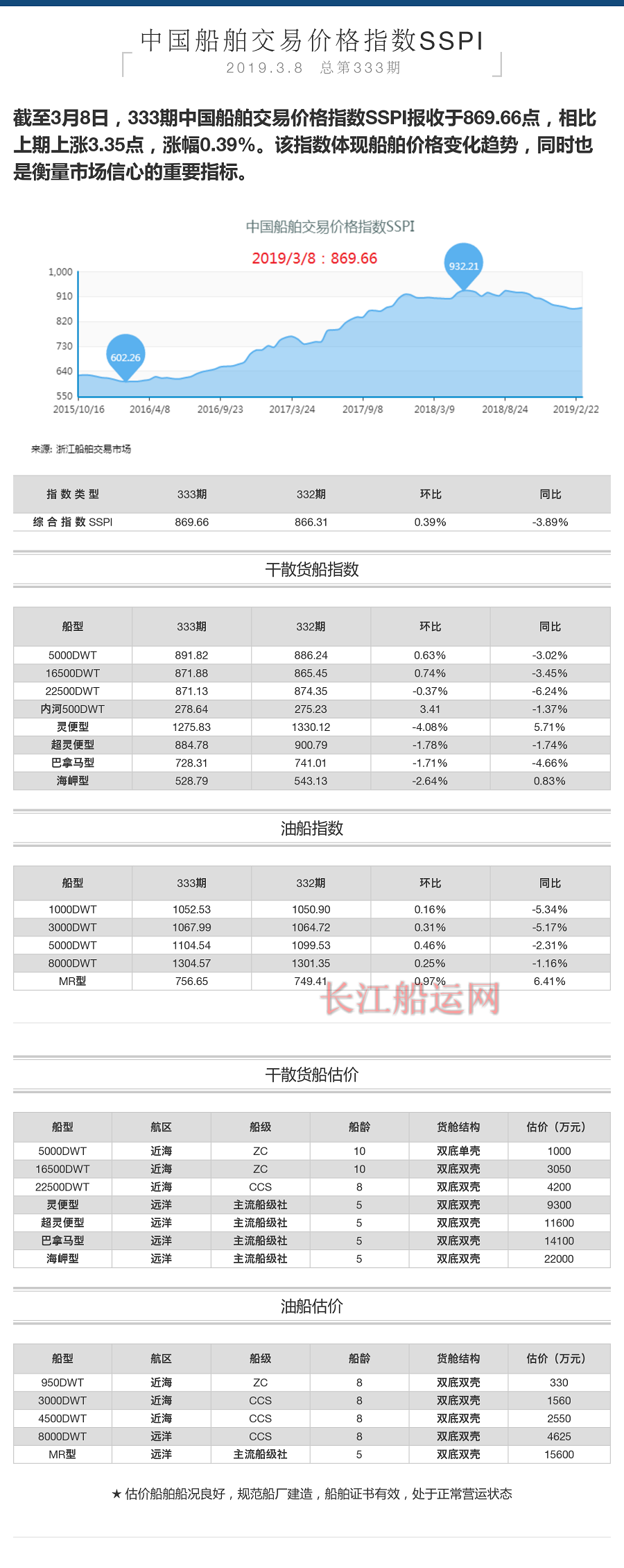333期中国船舶交易价格指数SSPI【2019.2.23-2019.3.8】