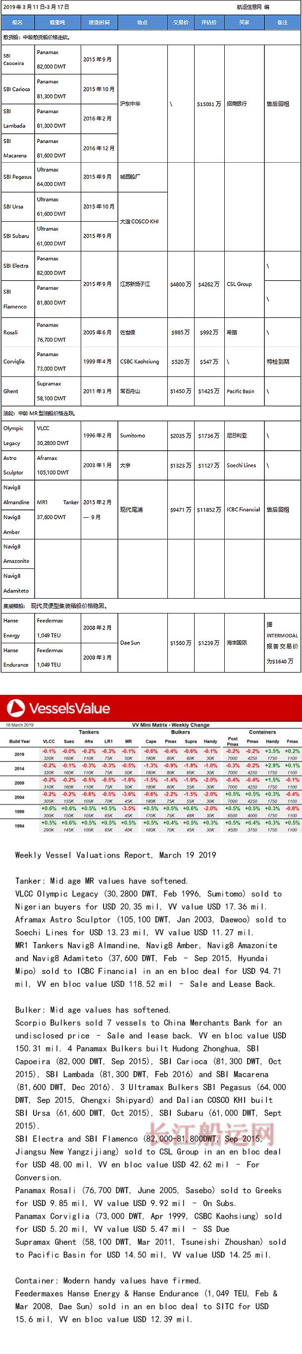 Vessels Value船舶估值报告(3月20日) 金融船东打包购船