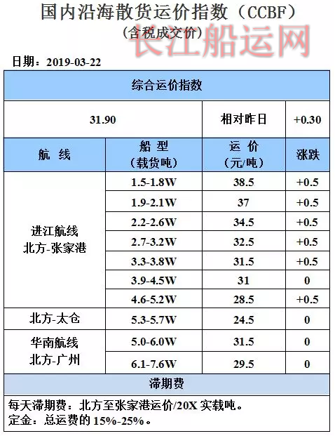 3月22日国内沿海运价参考