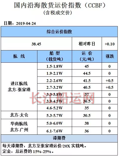 4月24日国内沿海运价参考