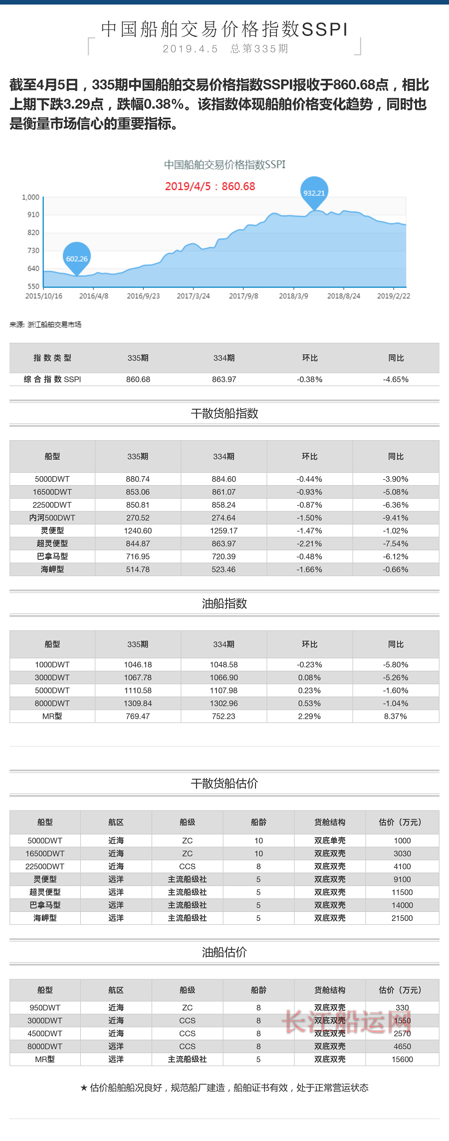 335期中国船舶交易价格指数SSPI【2019.3.21-2019.4.5】