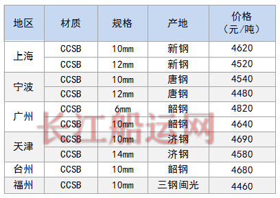 6月4日部分地区造船板价格参考