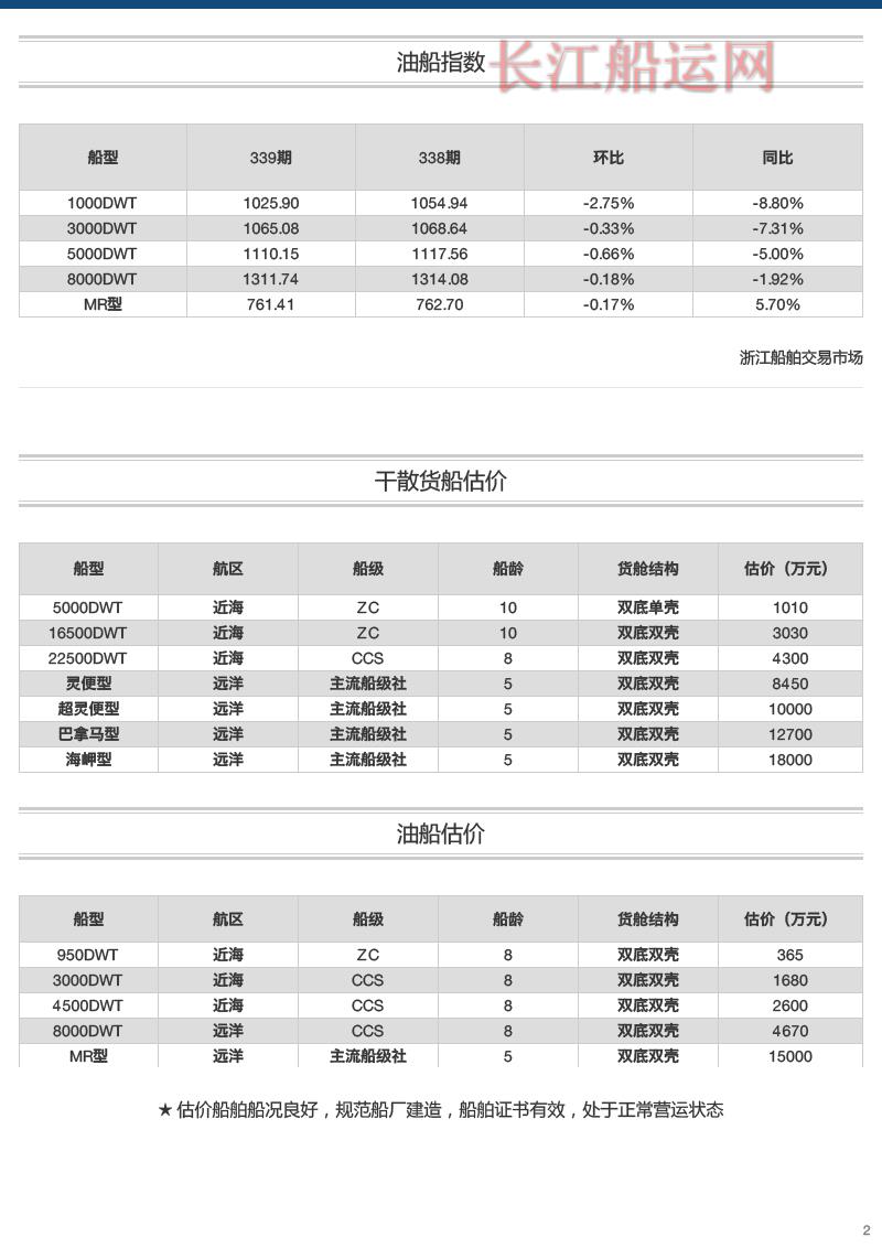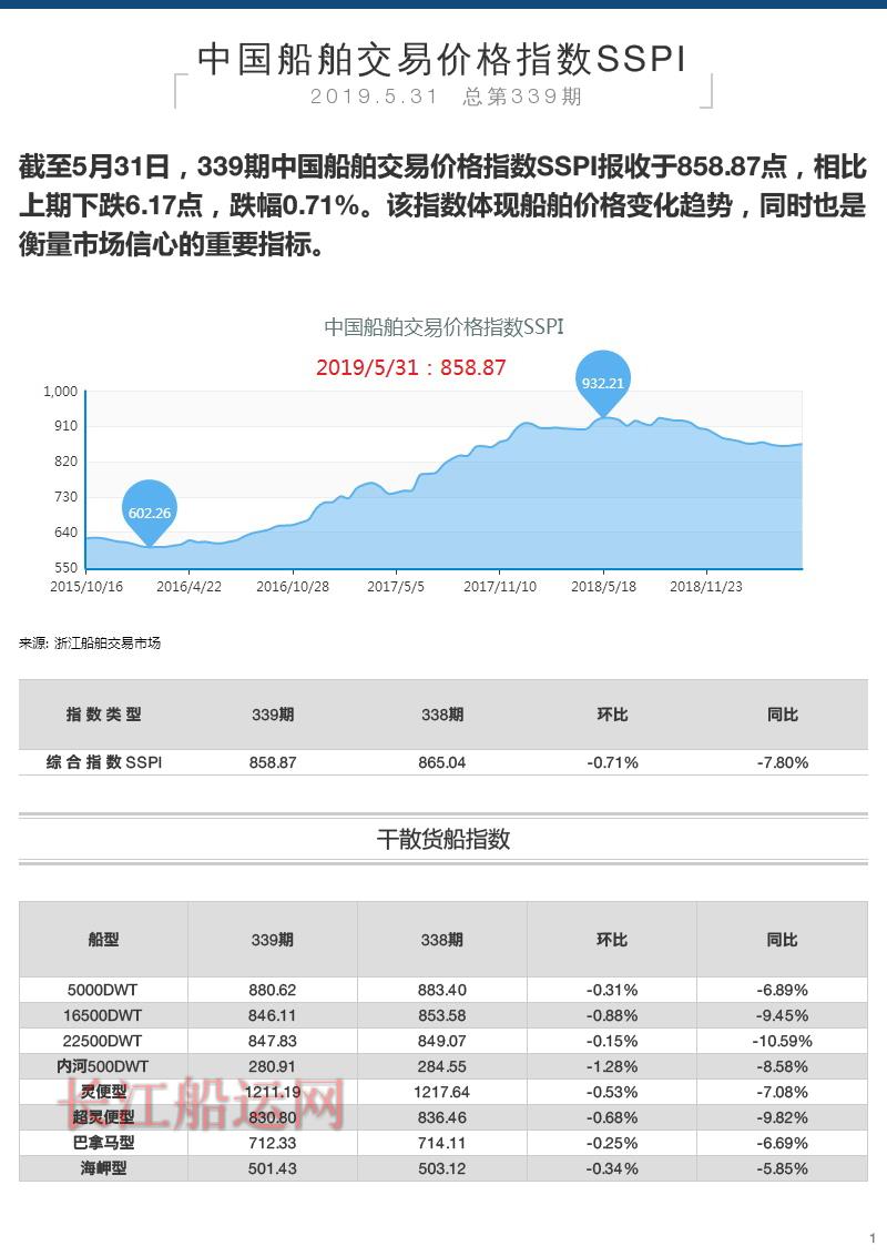 339期中国船舶交易价格指数SSPI【2019.5.18-2019.5.31】