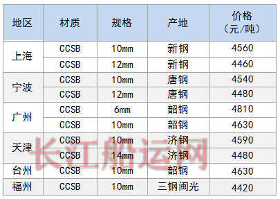 6月13日部分地区造船板价格参考