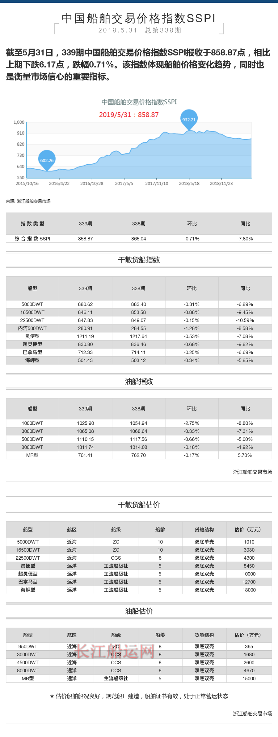 339期中国船舶交易价格指数SSPI【2019.5.18-2019.5.31】