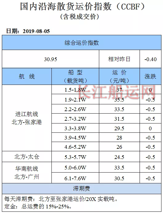 8月5日国内沿海运价参考