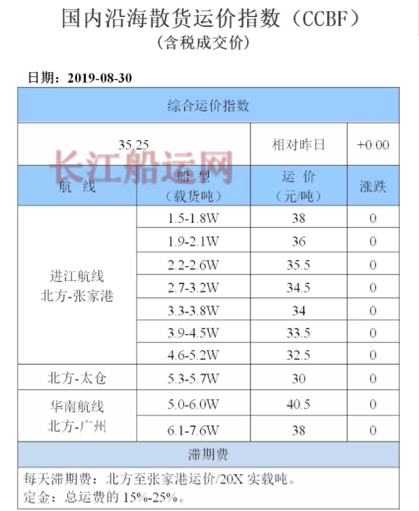8月30日国内沿海运价参考