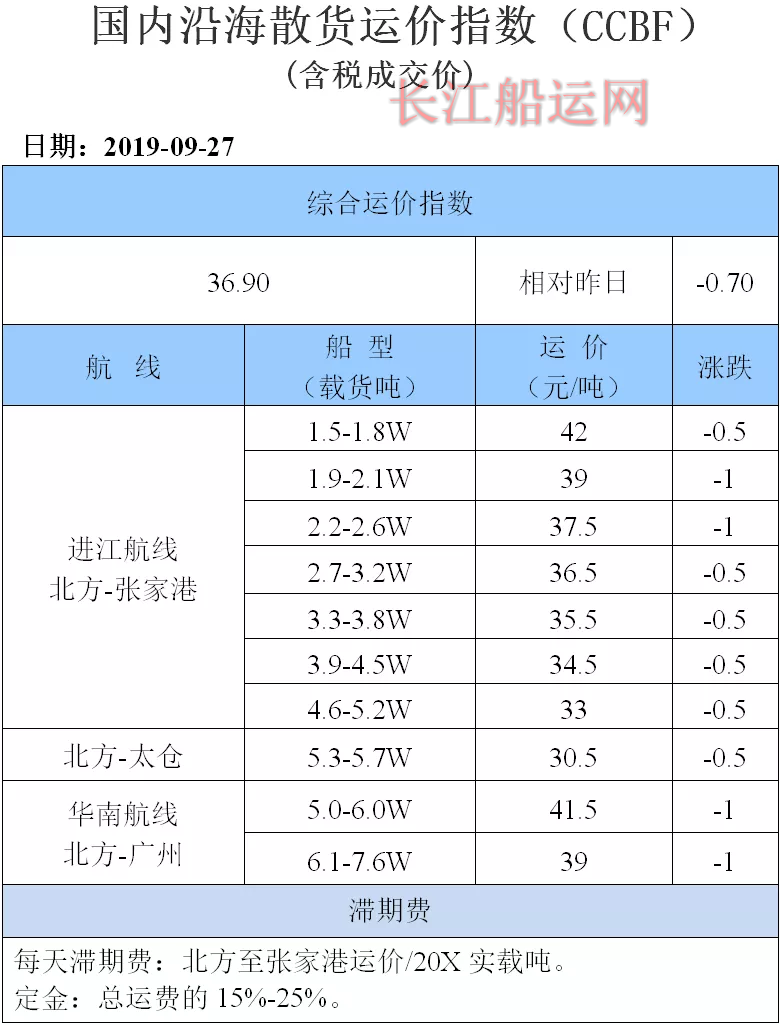 9月27日国内沿海运价参考