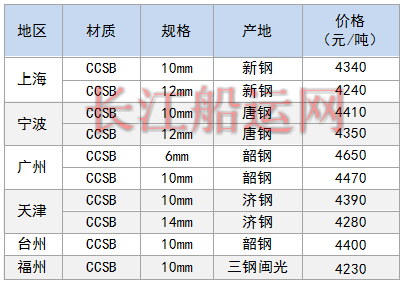 9月29日部分地区造船板价格参考
