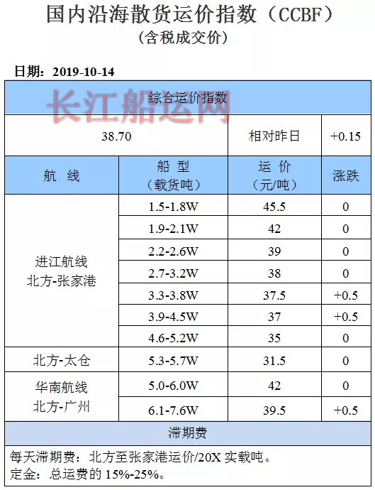 10月14日国内沿海运价参考