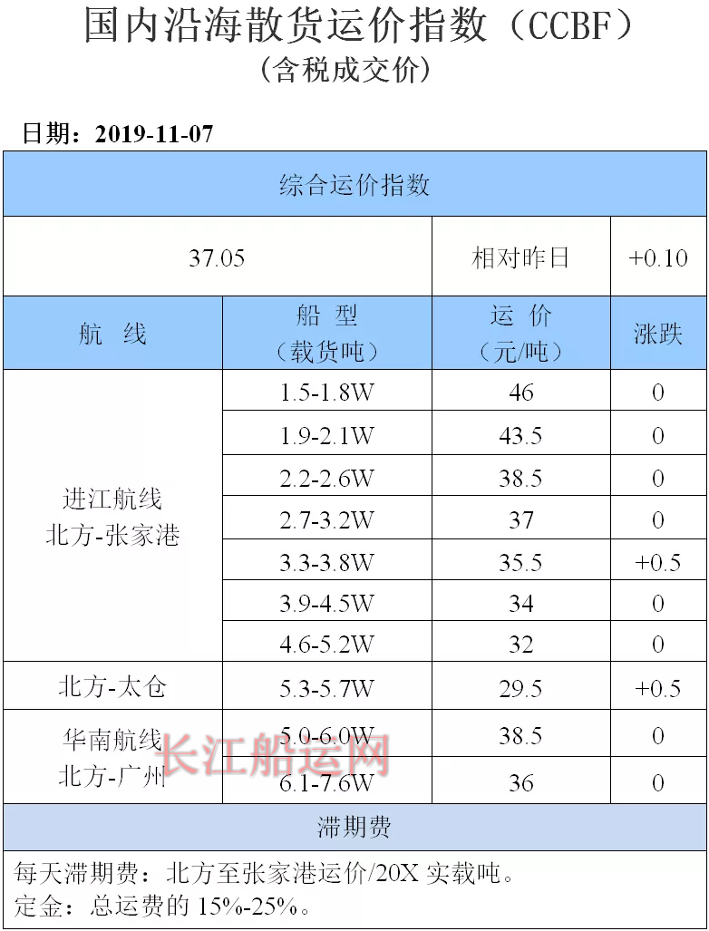 11月8日国内沿海运价参考