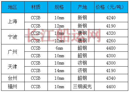 6月4日部分地区造船板价格参考