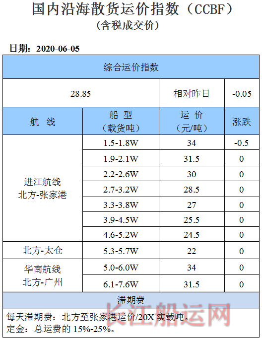 6月5日国内沿海运价参考