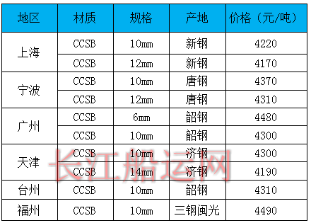 6月9日部分地区造船板价格参考