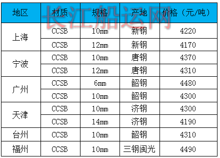 6月10日部分地区造船板价格参考