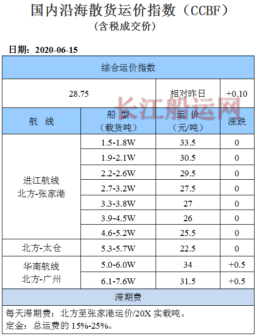 6月15日国内沿海运价参考