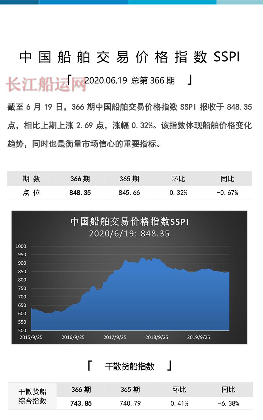 366期中国船舶交易价格指数SSPI【2020.6.06-2020.6.19】