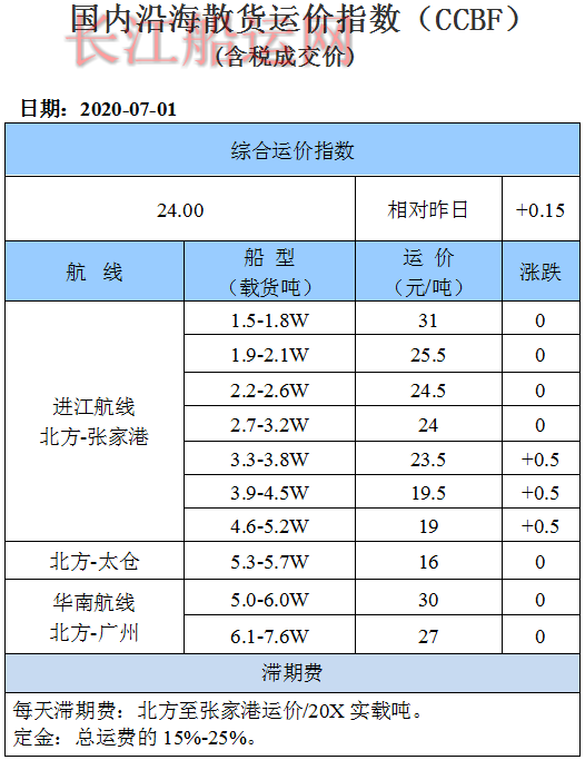 7月1日国内沿海运价参考