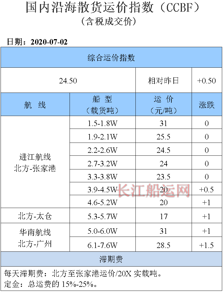 7月2日国内沿海运价参考