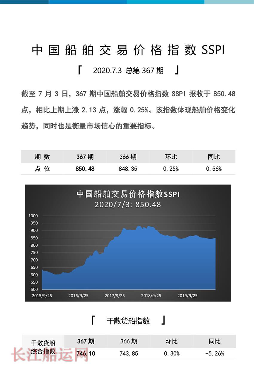367期中国船舶交易价格指数SSPI【2020.6.20-2020.7.03】