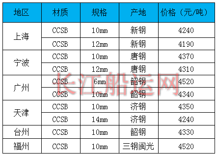7月16日部分地区造船板价格参考