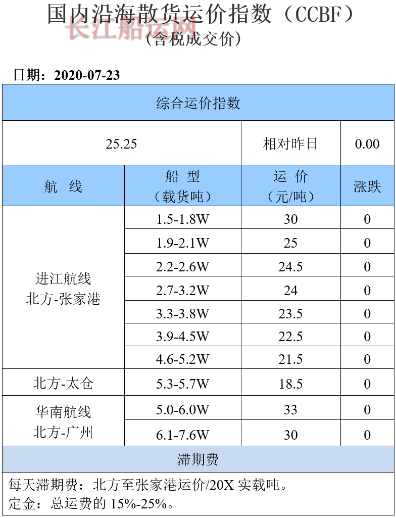 7月23日国内沿海运价参考