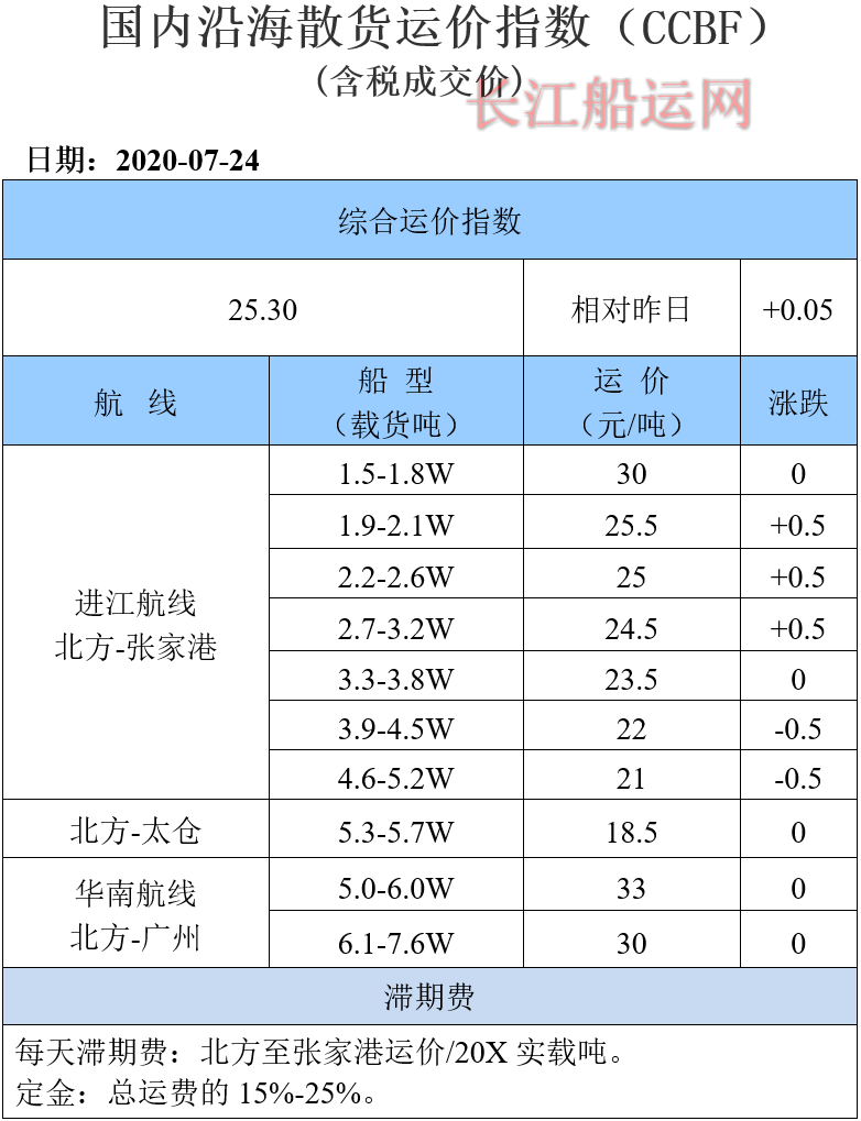 7月24日国内沿海运价参考