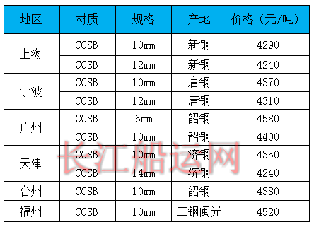 7月28日部分地区造船板价格参考