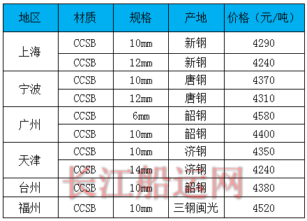 7月29日部分地区造船板价格参考