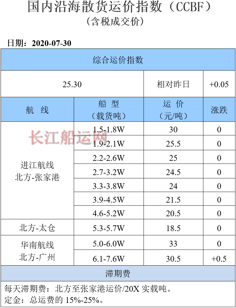 7月30日国内沿海运价参考