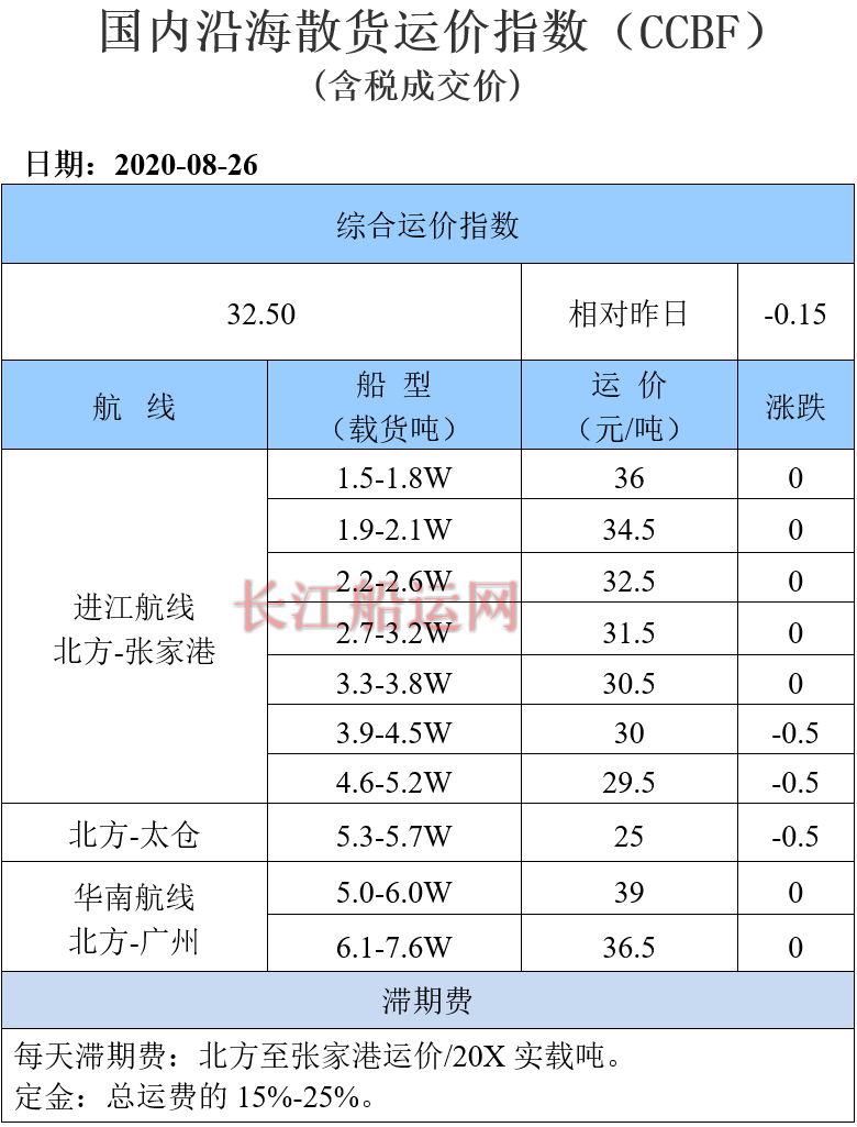 8月26日国内沿海运价参考