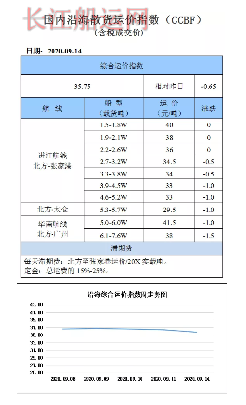 9月14日国内沿海运价参考