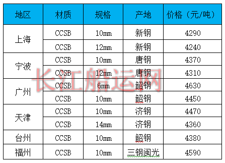 9月15日部分地区造船板价格参考