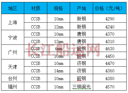 9月17日部分地区造船板价格参考