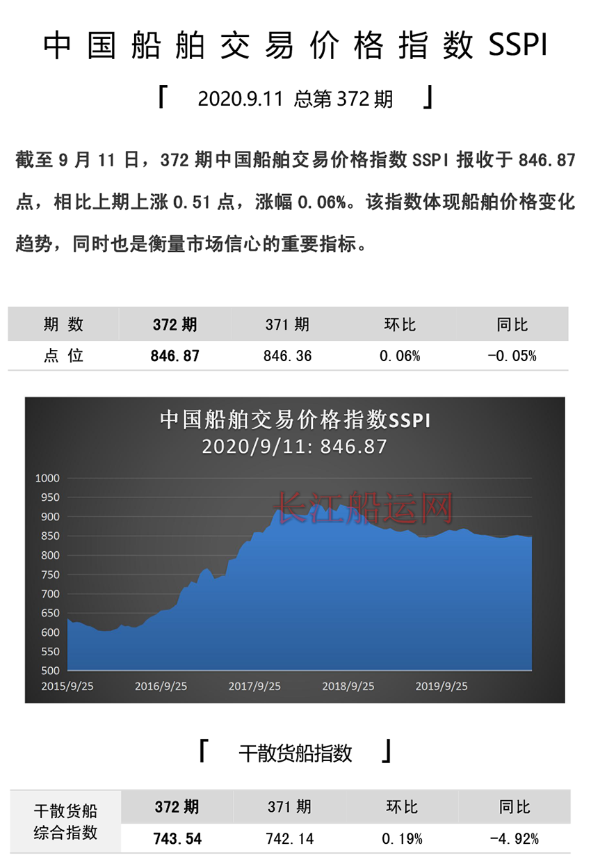 372期中国船舶交易价格指数SSPI【2020.8.29-2020.9.11】