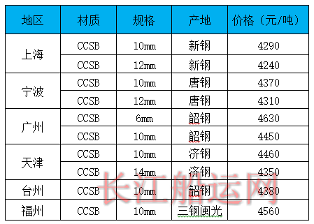 10月9日部分地区造船板价格参考
