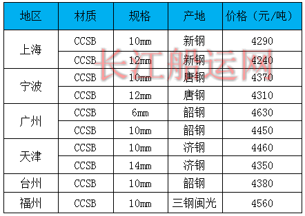 10月16日部分地区造船板价格参考