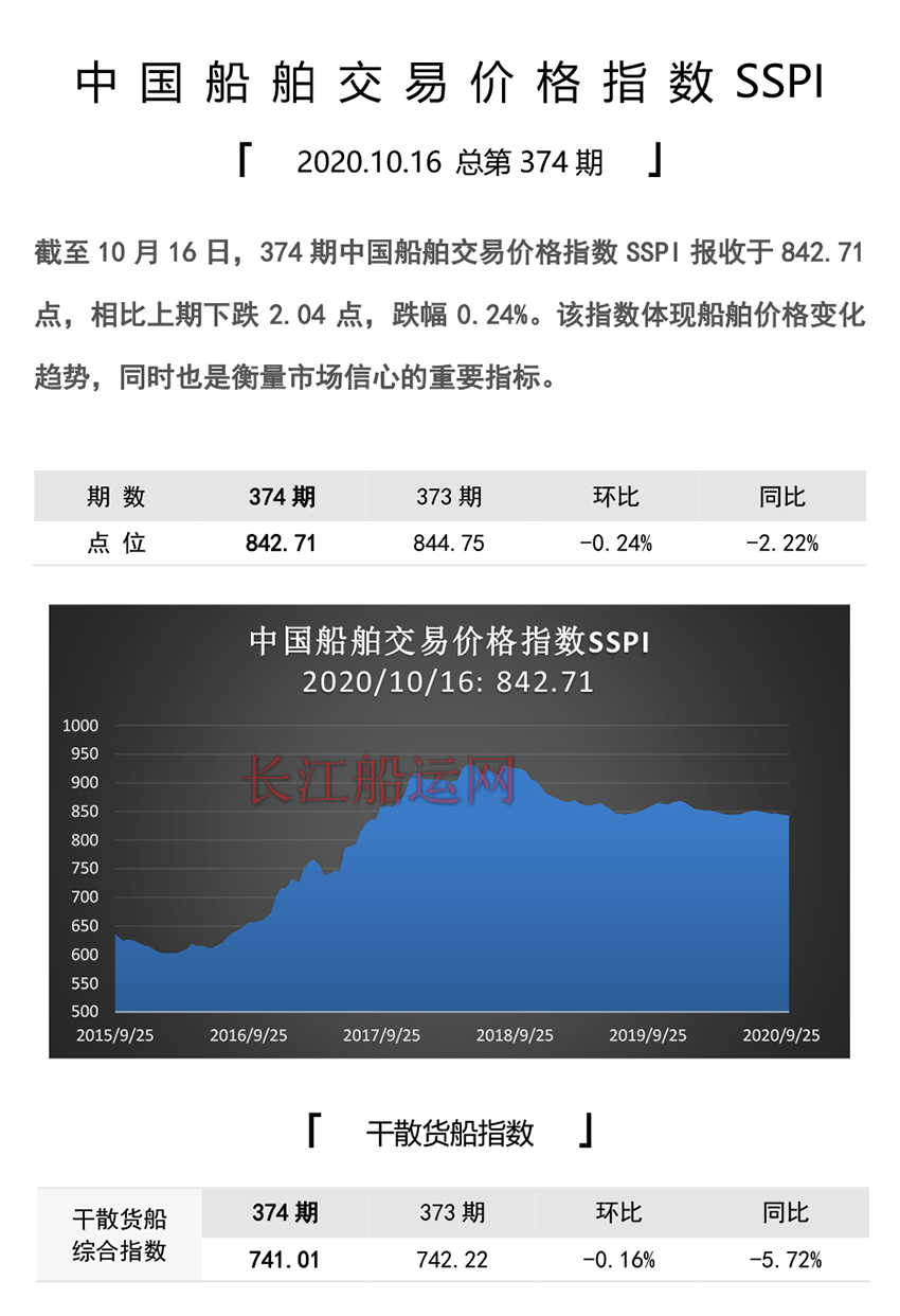 374期中国船舶交易价格指数SSPI【2020.9.26-202010.16】