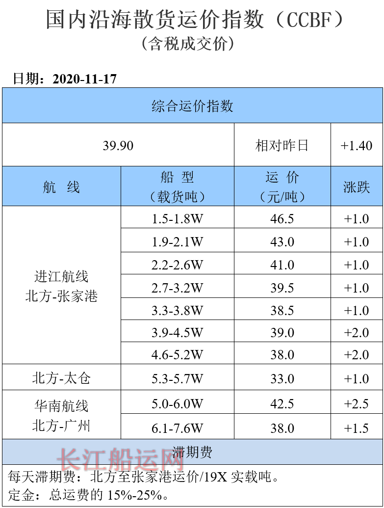 11月17日国内沿海运价参考