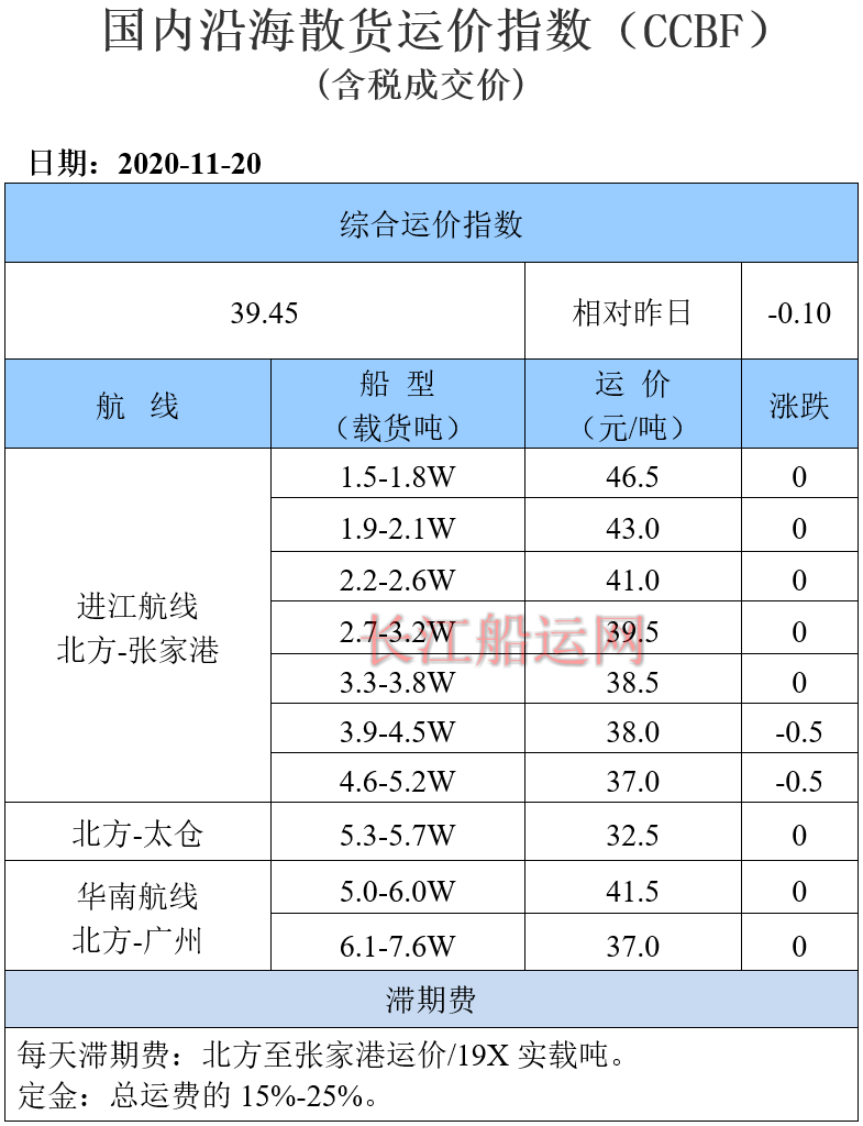 11月20日国内沿海运价参考